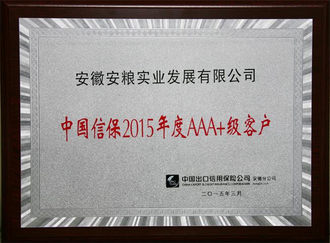 安糧實(shí)業(yè)獲中國(guó)信保2015年度AAA+級(jí)客戶(hù)稱(chēng)號(hào)