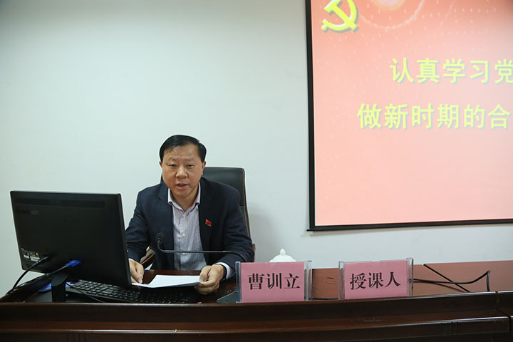 第二部分由安糧集團黨委委員曹訓立講授《認真學習黨章,做新時期的合格黨員》的講座,他依據(jù)“兩學一做”具體要求,針對黨員“四講四有”標準,結(jié)合公司實際,引經(jīng)據(jù)典、旁征博引,與大家分享做一名合格黨員就是要做到“忠誠、干凈、擔當”的六字箴言。