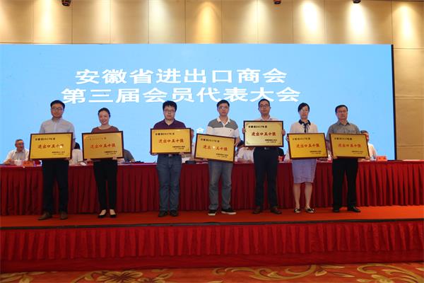 2018年6月21日,安徽省進出口商會第三屆會員代表大會在合肥天鵝湖大酒店召開,會上發(fā)布了《2017年安徽省進出口排行榜》并對“2017安徽省進出口總額50強企業(yè)”進行了授牌。