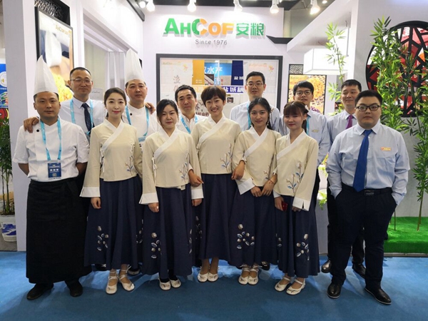 展會上,安糧實業(yè)的展臺延續(xù)去年頗受好評的徽派風格,獨具一格的展位設計,身穿漢服的安糧姑娘“紅唇粉肌,青衣羅衫”穿梭在徽派建筑之間,讓人眼前一亮。