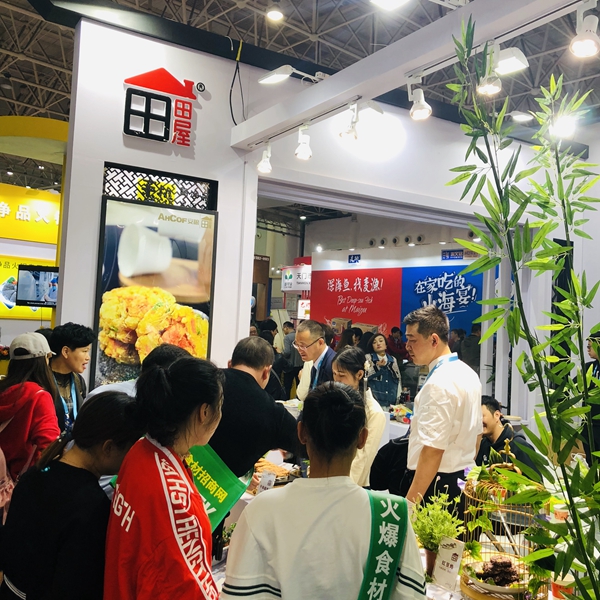 本次展會,除安糧米蘭蝦餅、魷魚藕餅、玉米烙等“田田屋”系列的老產品外,還有2019年最新推出的手撕藏香排、徽味臭鱖魚、虎皮蹄膀、九制陳皮骨、魚泥豆腐等餐飲食材?,F場銷售人員工作積極,從產品加工到適用渠道都進行一一詳細的解說,加上現場合作伙伴精彩的廚藝展示,安糧新食材讓眾多食材經銷商流連忘返、贊不絕口。前來咨詢的參觀者絡繹不絕,參展客戶對我們的產品表現出極大的興趣,紛紛表示希望展會結束后進行深度對接。