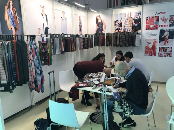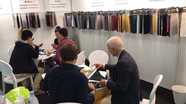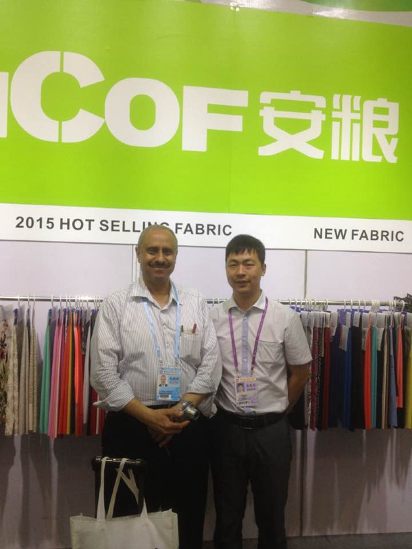 去過廣交會的同事們都知道,廣交會每天的參展任務(wù)是異常繁忙且辛苦的。5月1日國際勞動節(jié),也是廣交會三期開展的第一天,位于15.4號館主通道旁邊的安糧紡織品展位人流如織,云集的客商都被展位上精心挑選、花樣繁多的樣品所吸引。面料中晶晶閃閃的亮片、時尚FASHION的提花剪花格外受到客人們的青睞,單朋朋和同事們身邊圍滿了膚色各異的外國客商,他們既熱情又耐心地與每一位客商溝通,介紹產(chǎn)品信息、核算價格并及時登記記錄,便于展會后的持續(xù)跟進,展位上一片熱火朝天。