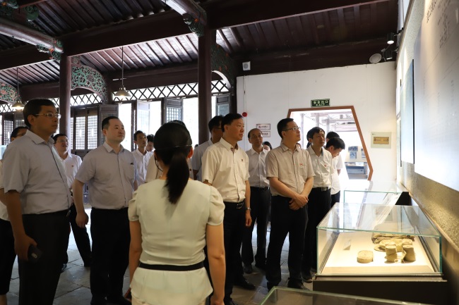 在瑤崗渡江戰(zhàn)役總前委舊址,黨員同志們在現(xiàn)場講解員的帶領(lǐng)下,認真觀看渡江戰(zhàn)役紀錄片,細致瀏覽一張張泛黃的歷史照片和珍貴的文獻實物,仔細端詳著陳舊卻依舊閃光的戰(zhàn)斗槍支、大刀和一件件浸潤著先烈血汗的棉褥、草鞋,在生動的講述中,感受70年前那段慷慨激昂、艱苦卓絕的革命歲月。