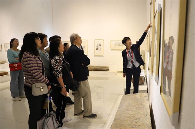 博物館內(nèi)青墻黛瓦、翹角飛檐,處處展示著徽州文化的獨(dú)特魅力。在講解員的帶領(lǐng)下,大家先后參觀了徽派石雕瑞獸展廳、古徽州木雕展廳、石刻人物造像展廳、百匾堂展廳等地方。一棟棟矗立于展區(qū)“無夢(mèng)園”中的清代老宅給了大家視覺上的直接震撼,館中的民俗用品更將大家?guī)Щ亓送舻臅r(shí)光。
