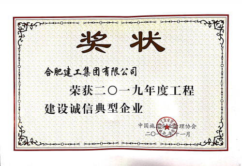 合肥建工獲評“2019年度工程建設誠信典型企業(yè)”