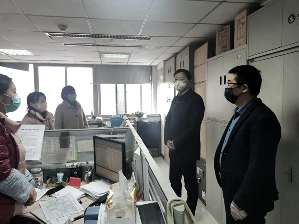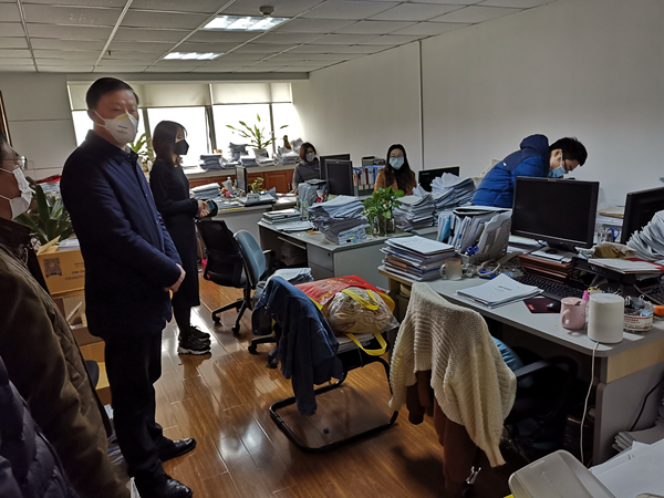 根據(jù)公司統(tǒng)一安排,涉及業(yè)務(wù)開展和資金運(yùn)行的職能部門從3日起安排專人現(xiàn)場(chǎng)值班辦公。在盛安廣場(chǎng)一樓大廳接受進(jìn)場(chǎng)檢測(cè)時(shí),曹訓(xùn)立董事長(zhǎng)詢問(wèn)了近日大樓進(jìn)出人員情況和檢查情況,要求物業(yè)公司務(wù)必把好大樓的進(jìn)門關(guān)。在大樓走訪時(shí),曹董事長(zhǎng)來(lái)到安糧國(guó)際、安糧實(shí)業(yè)和安糧控股的財(cái)務(wù)部、國(guó)際結(jié)算部等部門,了解工作進(jìn)展情況和人員值班情況,要求相關(guān)部門妥善做好值班人員輪崗和現(xiàn)場(chǎng)防護(hù)工作,重點(diǎn)保障業(yè)務(wù)開展,尤其保障放假期間的資金調(diào)配。他指出,當(dāng)前疫情防控工作任務(wù)艱巨,首先要確保在崗人員的人身健康萬(wàn)無(wú)一失,盡量采用遠(yuǎn)程辦公、預(yù)約辦事等方式處理必要的工作任務(wù),減少員工在崗次數(shù)和時(shí)間。