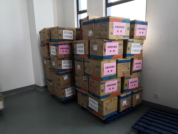 2月17日上午九點(diǎn),數(shù)經(jīng)輾轉(zhuǎn)、期盼已久的口罩歷經(jīng)百折千難終于抵達(dá)合肥新橋機(jī)場(chǎng)的中外運(yùn)倉(cāng)庫(kù)。早就做好充分準(zhǔn)備并以最快速度報(bào)送了清關(guān)單據(jù)的安糧實(shí)業(yè),前后不到一小時(shí)就順利完成了清關(guān)手續(xù),國(guó)貿(mào)集團(tuán)、安糧集團(tuán)立即安排貨物的配送工作。