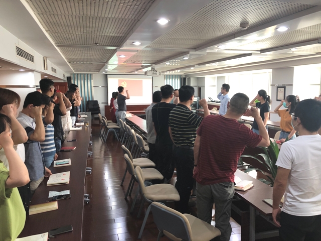 “我志愿加入中國(guó)共產(chǎn)黨,擁護(hù)黨的綱領(lǐng)……”7月17日,安糧實(shí)業(yè)黨支部慶祝建黨99周年紅色教育活動(dòng)在18樓會(huì)議室舉行,參與活動(dòng)的黨員通過(guò)重溫入黨誓詞、觀看大型紀(jì)錄片《紅色印記》的方式,來(lái)慶祝黨的生日,銘記黨的歷史,謳歌黨的光輝歷程。