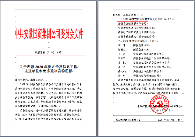 安糧集團(tuán)榮獲國貿(mào)集團(tuán)2020年度宣傳及信息工作表彰
