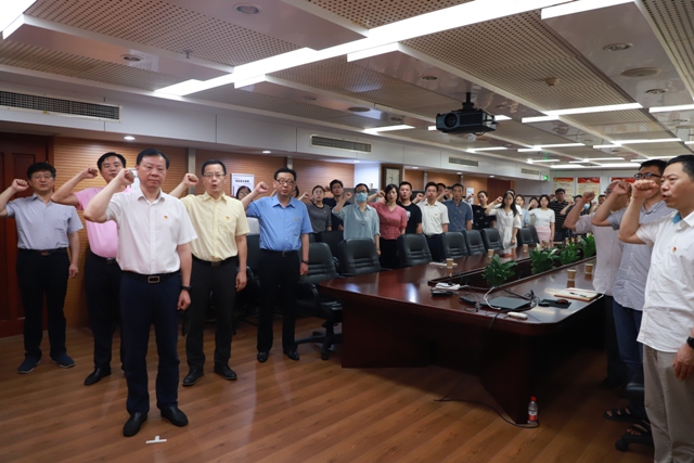 (曹訓(xùn)立帶領(lǐng)安糧集團(tuán)黨委班子、集團(tuán)直屬黨支部、安糧控股黨支部重溫入黨誓詞)