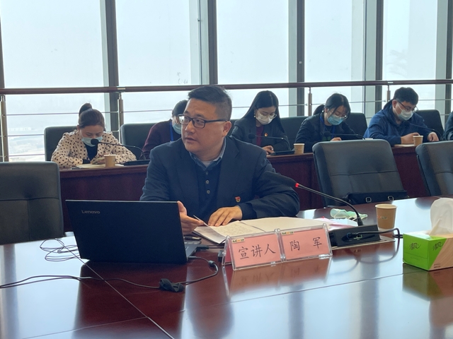安徽國(guó)貿(mào)黨委副書(shū)記陶軍走進(jìn)安糧集團(tuán)宣講黨的十九屆六中全會(huì)精神