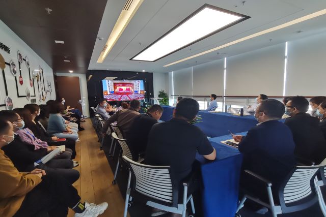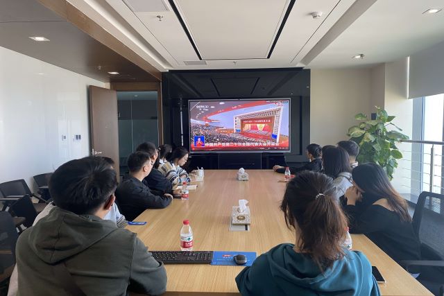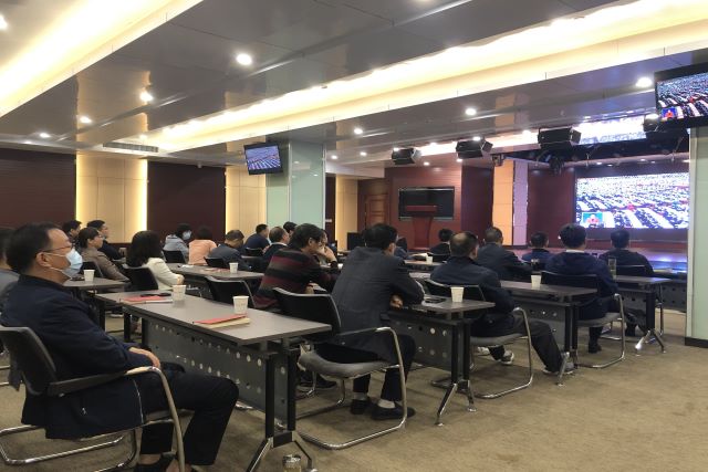 當天上午,在安糧中心3208會議室內(nèi),安糧集團黨委書記曹訓立等黨委委員,團委委員,集團、控股支部黨員,部門負責人以及子公司黨員領(lǐng)導(dǎo)干部、統(tǒng)戰(zhàn)人員代表集中收看了開幕直播盛況,同志們聚精會神地聽、專心致志地記,仿佛置身于大會現(xiàn)場。