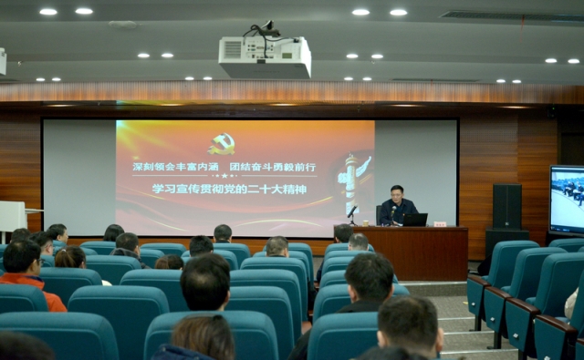何汝才書記為安糧國際50余名黨員作了“深刻領(lǐng)會豐富內(nèi)涵 團(tuán)結(jié)奮斗勇毅前行——學(xué)習(xí)宣傳貫徹黨的二十大精神”主題宣講。 他從深刻領(lǐng)會黨的二十大會議的重要意義、精神實質(zhì)、弘揚(yáng)偉大建黨精神、深刻領(lǐng)會以中國式現(xiàn)代化推進(jìn)中華民族偉大復(fù)興的歷史重任等四個方面系統(tǒng)、深入地解讀了黨的二十大精神重大意義、主題內(nèi)涵及核心內(nèi)容,并結(jié)合海螺集團(tuán)、安徽國貿(mào)的發(fā)展對所有黨員干部作出要求。他強(qiáng)調(diào),學(xué)習(xí)宣傳貫徹黨的二十大精神是公司當(dāng)前和今后一個時期的重大政治任務(wù),要深刻領(lǐng)會黨的二十大報告對堅定不移全面從嚴(yán)治黨、深入推進(jìn)新時代黨的建設(shè)偉大工程作出的重要部署;要堅持學(xué)思用貫通,聚焦主責(zé)主業(yè),堅持高質(zhì)量發(fā)展,切實把黨的二十大精神落實到各項具體工作和實際行動中,展現(xiàn)更大擔(dān)當(dāng)作為,為海螺集團(tuán)“爭創(chuàng)世界一流企業(yè)”貢獻(xiàn)更大力量。