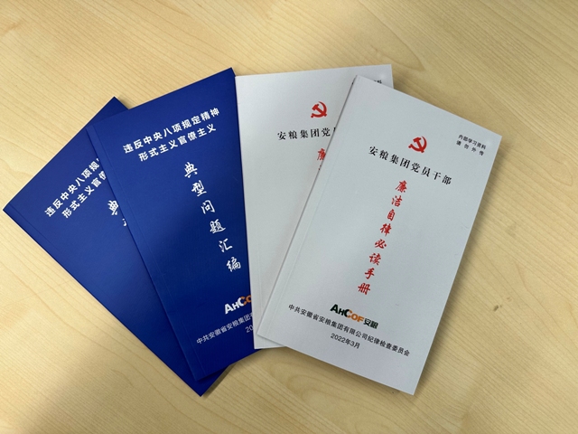 會(huì)議還給每位新任職干部發(fā)放了《安糧集團(tuán)黨員干部廉潔從業(yè)必讀手冊》和《違反中央八項(xiàng)規(guī)定精神形式主義官僚主義典型問題匯編》。
