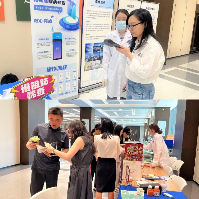 活動(dòng)現(xiàn)場(chǎng)開設(shè)“慢阻肺專項(xiàng)篩查通道”,通過(guò)A1技術(shù)開展肺部健康檢測(cè),幫助員工了解呼吸道健康狀況,實(shí)現(xiàn)肺部疾病的早發(fā)現(xiàn)、早干預(yù)。工作人員現(xiàn)場(chǎng)詳解慢阻肺的預(yù)防要點(diǎn)與日常護(hù)理知識(shí),針對(duì)員工提出的健康問(wèn)題進(jìn)行一對(duì)一解答,切實(shí)提升員工對(duì)慢性呼吸道疾病的重視程度。