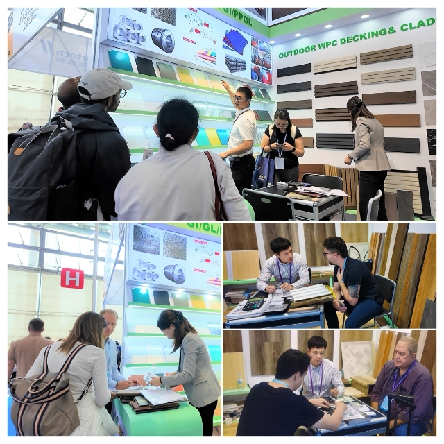 在建材展區(qū),同樣亮點(diǎn)紛呈。安糧以“適配性”和“實(shí)用性”贏得客戶認(rèn)可。展區(qū)重點(diǎn)展示的室內(nèi)地板、墻板及格柵等產(chǎn)品,可實(shí)現(xiàn)“墻地一體化”裝修,為客戶提供高效、整體的空間解決方案。其中,UV亮面墻板因安裝便捷省時(shí)的特點(diǎn),成為現(xiàn)場(chǎng)咨詢量最高的產(chǎn)品之一。值得關(guān)注的是,“波浪瓦” 作為本次展出的核心亮點(diǎn)產(chǎn)品,憑借其卓越的防水與排水性能、隔熱與保溫、防火阻燃等特性,吸引了來(lái)自南美和非洲區(qū)域的多位客戶,目前已與阿根廷、津巴布韋和幾內(nèi)亞等國(guó)客戶達(dá)成初步合作意向。