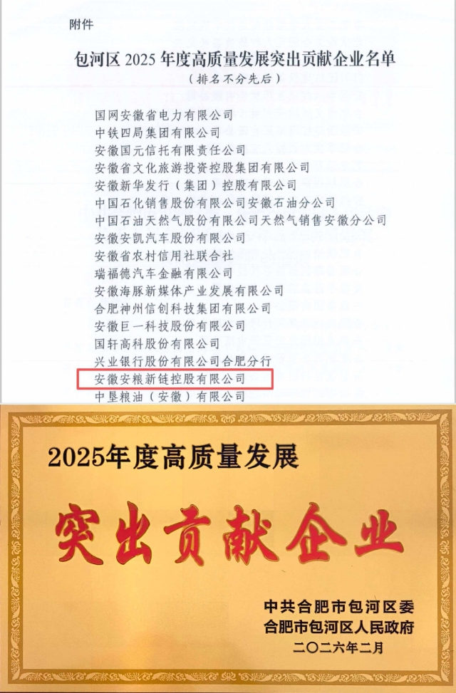 安糧新鏈榮獲包河區(qū)2025年度高質量發(fā)展突出貢獻企業(yè)